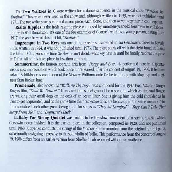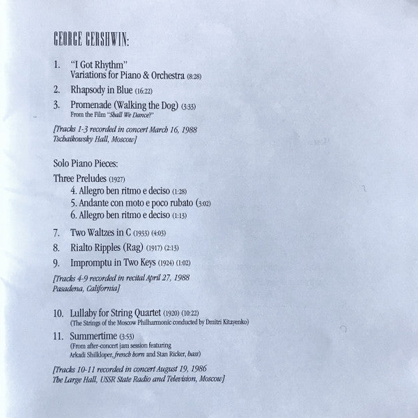 Tracks A1 to A3 recorded in concert March 16, 1988, Tschaikowsky Hall, Moscow.