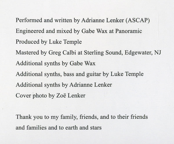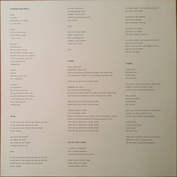 Tracklist: A1. Terminal Paradise, A2. From, A3. Womb, A4. Out Of Your Mind, A5. Cradle, B1. Symbol, B2. Blue And Red Horses, B3. Abyss Kiss, B4. What Can You Say, B5. 10 Miles