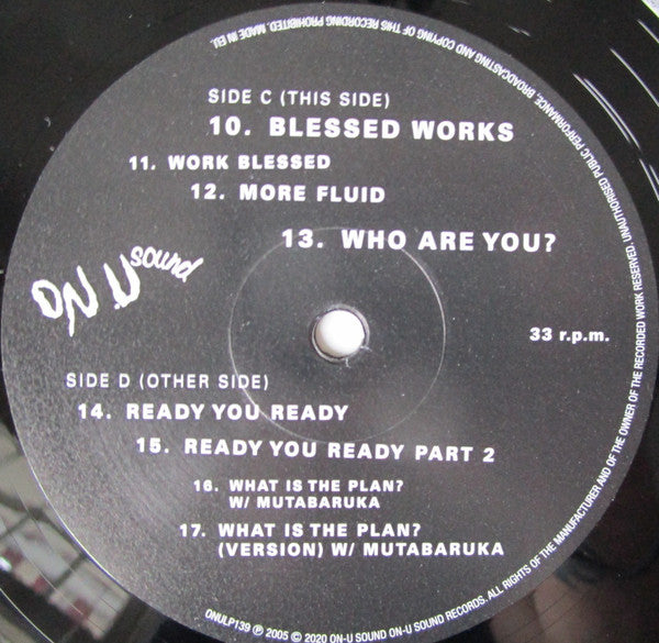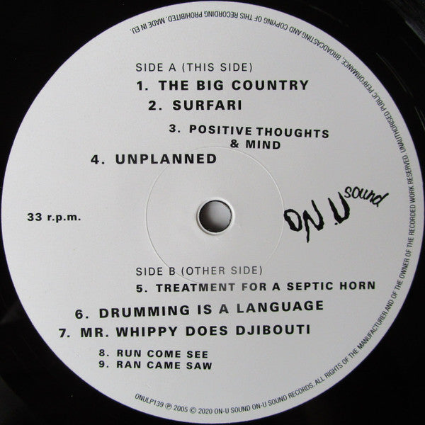 Tracklist: A1. The Big Country, A2. Surfari, A3. Positive Thoughts & Mind, A4. Unplanned, B1. Treatment For A Septic Horn, B2. Drumming Is A Language, B3. Mr. Whippy Does Djibouti, B4. Run Come See, B5. Ran Came Saw, C1. Blessed Works, C2. Work Blessed, C3. More Fluid, C4. Who Are You?, D1. Ready You Ready, D2. Ready You Ready Part 2, D3. What Is The Plan?, D4. What Is The Plan? (Version)