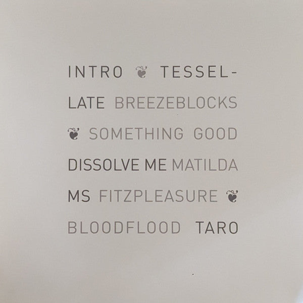 Tracklist: A1. Intro, A2. ❦ (Ripe & Ruin), A3. Tessellate, A4. Breezeblocks, A5. ❦ (Guitar), A6. Something Good, A7. Dissolve Me, B1. Matilda, B2. Ms, B3. Fitzpleasure, B4. ❦ (Piano), B5. Bloodflood, B6. Taro