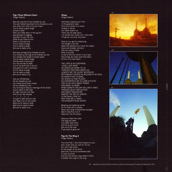 Tracklist: A1. Pigs On The Wing 1, A2. Dogs, B1. Pigs (Three Different Ones), B2. Sheep, B3. Pigs On The Wing 2