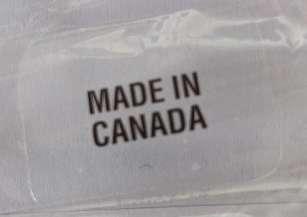 "MADE IN CANADA" printed on sticker on back of shrinkwrap.