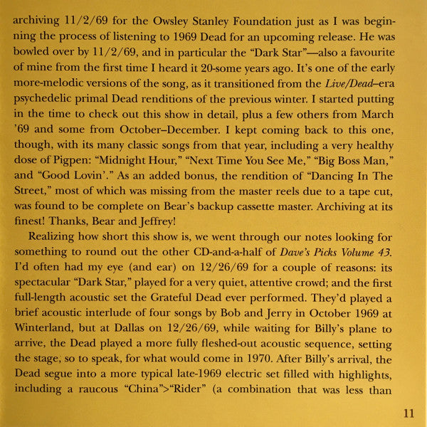 Dave's Picks, Volume 43 (3xCD)(San Francisco, 11/2/69 • Dallas, 12/26/69) | Mint (M) Near Mint (NM)