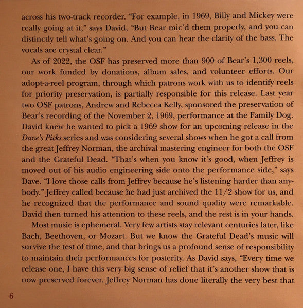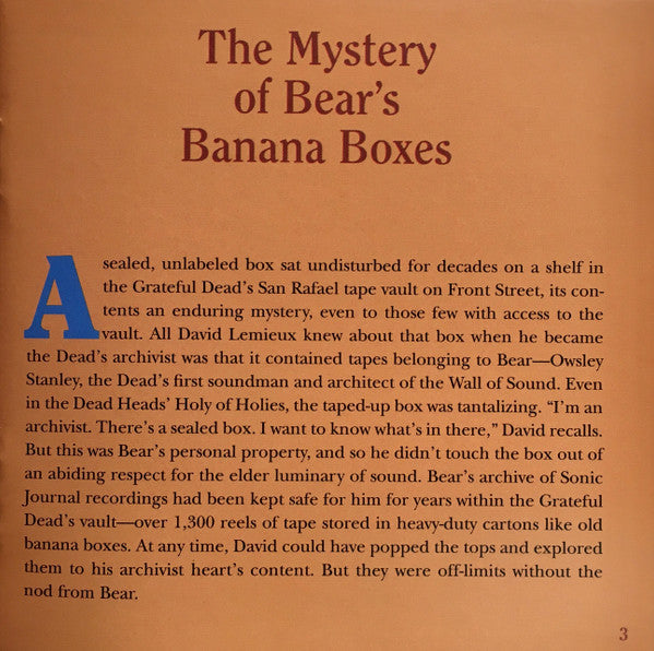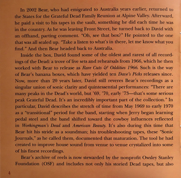 Tracklist: . Family Dog At The Great Highway, San Francisco, CA (11/2/69), 1-1. Cold Rain And Snow, 1-2. In The Midnight Hour, 1-3. Seasons Of My Heart, 1-4. Mama Tried, 1-5. Next Time You See Me, 1-6. Good Lovin', 1-7. Big Boss Man, 1-8. Casey Jones, 1-9. Dancing In The Street, . McFarlin Memorial Auditorium, Southern Methodist University, Dallas, TX (12/26/69), 1-10. The Monkey And The Engineer, 1-11. Little Sadie, 1-12. Long Black Limousine, 1-13. I've Been All Around This World, 1-14. Gathering Flowers For The Master's Bouquet, . Family Dog At The Great Highway, San Francisco, CA (11/2/69), 2-1. Dark Star, 2-2. St. Stephen, 2-3. The Eleven, 2-4. Death Don't Have No Mercy, . McFarlin Memorial Auditorium, Southern Methodist University, Dallas, TX (12/26/69), 2-5. Black Peter, 2-6. Uncle John's Band, 3-1. Casey Jones, 3-2. Hard To Handle, 3-3. China Cat Sunflower, 3-4. I Know You RIder, 3-5. High Time, 3-6. Me And My Uncle, 3-7. Dark Star, 3-8. New Speedway Boogie, 3-9. Turn On Your Lovelight