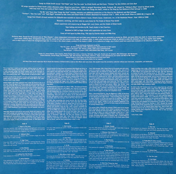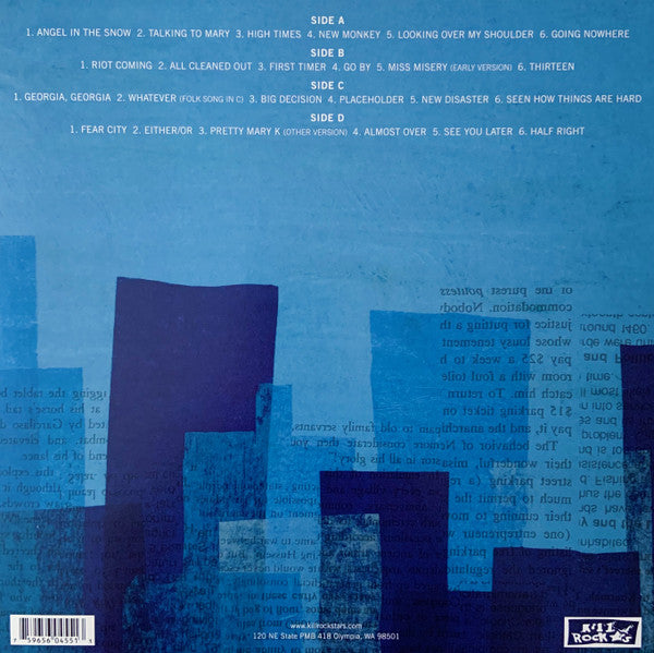 Tracklist: A1. Angel In The Snow, A2. Talking To Mary, A3. High Times, A4. New Monkey, A5. Looking Over My Shoulder, A6. Going Nowhere, B1. Riot Coming, B2. All Cleaned Out, B3. First Timer, B4. Go By, B5. Miss Misery (Early Version), B6. Thirteen, C1. Georgia, Georgia, C2. Whatever (Folk Song In C), C3. Big Decision, C4. Placeholder, C5. New Disaster, C6. Seen How Things Are Hard, D1. Fear City, D2. Either/Or, D3. Pretty Mary K (Other Version), D4. Almost Over, D5. See You Later, D6. Half Right