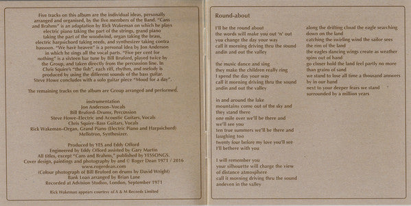 Tracklist: 1. Roundabout, 2. Cans And Brahms, 3. We Have Heaven, 4. South Side Of The Sky, 5. Five Per Cent For Nothing, 6. Long Distance Runaround, 7. The Fish (Schindleria Praematurus), 8. Mood For A Day, 9. Heart Of The Sunrise