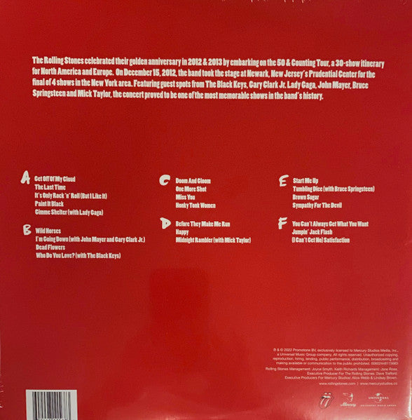 Tracklist: A1. Get Off Of My Cloud , A2. The Last Time , A3. It's Only Rock'n'Roll (But I Like It), A4. Paint It Black , A5. Gimme Shelter, B1. Wild Horses, B2. I'm Going Down, B3. Dead Flowers, B4. Who Do You Love, C1. Doom And Gloom, C2. One More Shot, C3. Miss You , C4. Honky Tonk Women , D1. Before They Make Me Run , D2. Happy, D3. Midnight Rambler, E1. Start Me Up , E2. Tumbling Dice, E3. Brown Sugar, E4. Sympathy For The Devil , F1. You Can't Always Get What You Want , F2. Jumpin' Jack Flash , F3. (I Can't Get No) Satisfaction