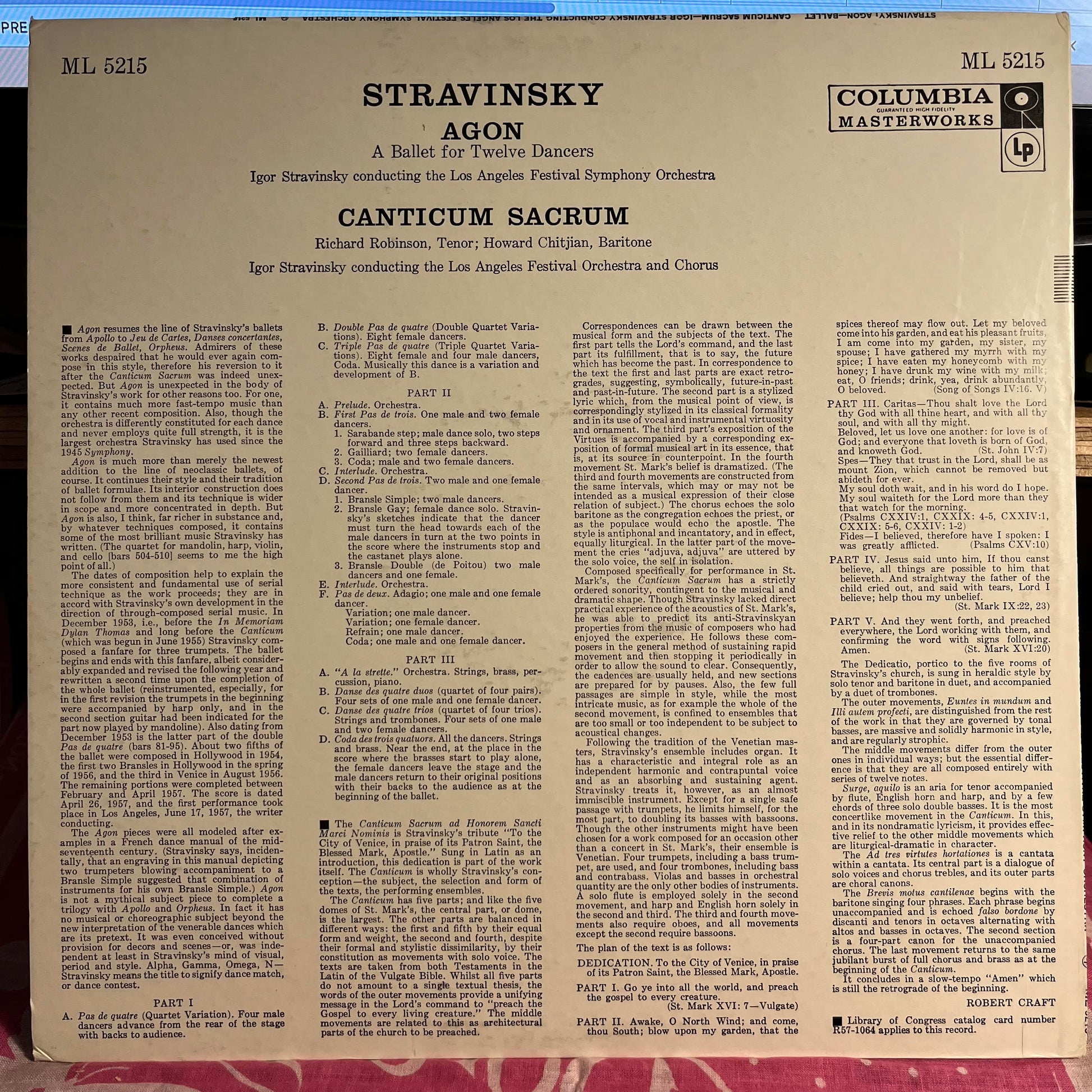 Tracklist: A. Agon. A Ballet For Twelve Dancers, B. Canticum Sacrum Ad Honorem Sancti Marci Nominis