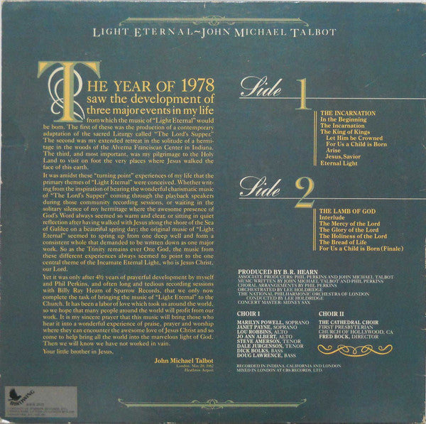 Tracklist: A1. In The Beginning, A2. The Incarnation, A3. The King Of Kings: Let Him Be Crowned / For Us A Child Is Born / Arise / Jesus, Savior, A4. Eternal Light, B1. Interlude, B2. The Mercy Of The Lord / The Glory Of The Lord, B3. The Holiness Of The Lord, B4. The Bread Of Life, B5. For Us A Child Is Born / Finale
