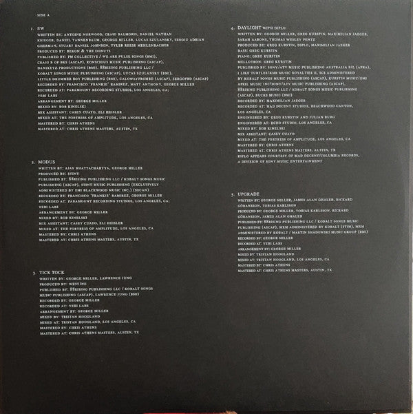 Tracklist: A1. Ew, A2. Modus, A3. Tick Tock, A4. Daylight, A5. Upgrade, B1. Gimme Love, B2. Run, B3. Sanctuary, B4. High Hopes, C1. Nitrous, C2. Pretty Boy, C3. Normal People, C4. Afterthought, C5. Mr. Hollywood, D1. 777, D2. Reanimator, D3. Like You Do, D4. Your Man