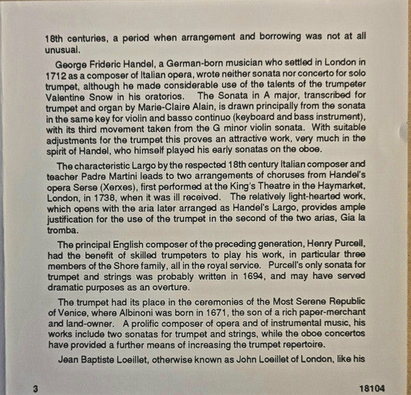 Tracklist: . Sonata In A Major, 5. Largo, 6. Xerxes: Cio Che Giove, 7. Xerxes:Gia La Tromba, . Sonata For Trumpet And Organ, . Concerto In F Major, . Sonata In G Major, 18. Amadigi: Sinfonia, 19. Amadigi: Dite Destero, 20. Sonata A 4 In G Minor