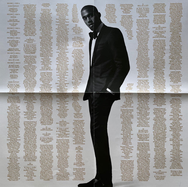 Tracklist: A1. Dark Fantasy, A2. Gorgeous, B1. Power, B2. All Of The Lights (Interlude), B3. All Of The Lights, C. Monster, D1. So Appalled, D2. Devil In A New Dress, E1. Runaway, E2. Hell Of A Life, F1. Blame Game, F2. Lost In The World, F3. Who Will Survive In America