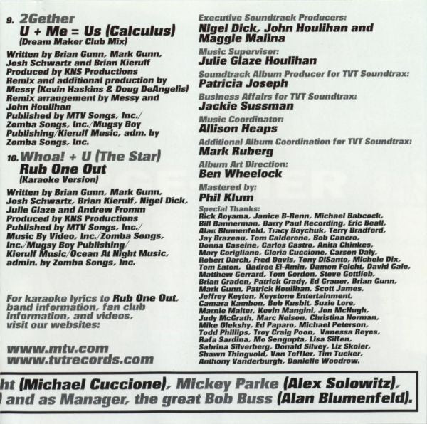 Band [2Gether] – Alex Solowitz, Chad Linus, Doug Linus, Evan Farmer (2), Jerry O'Keefe, Kevin Farley, Michael Cuccione, Mickey Parke, Noah Bastian, Q.T. McKnight