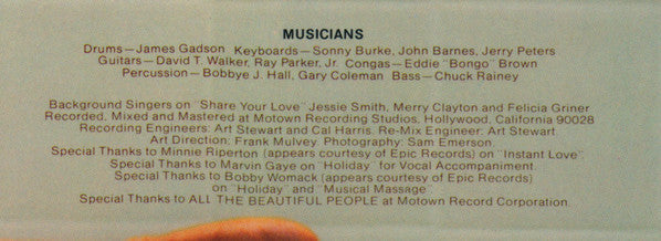 Tracklist: A1. Learning How To Love You, A2. Instant Love, A3. Body Heat, A4. Share Your Love, A5. Holiday, B1. Phantom Lover, B2. Journey Into You, B3. Musical Massage, B4. French Waltz, B5. Turn Out The Light