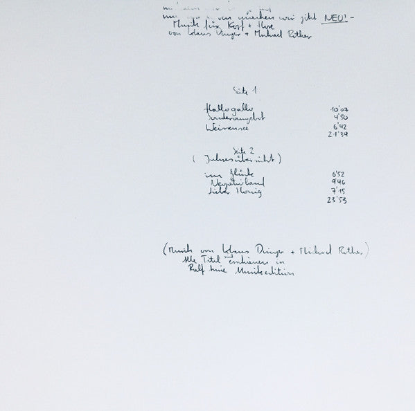 Tracklist: A1. Hallogallo, A2. Sonderangebot, A3. Weissensee, . Jahresübersicht, B1. Im Glück, B2. Negativland, B3. Lieber Honig