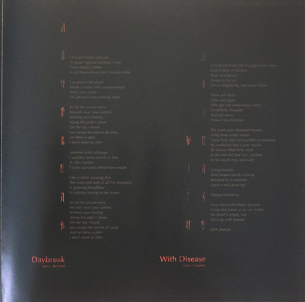 Tracklist: A1. Where The Light Fades, A2. Mind Burns Alive, B1. Signals, B2. Endless Place, C1. Daybreak, C2. With Disease
