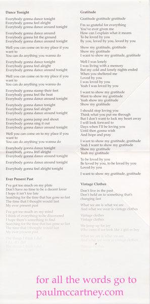 Tracklist: 1. Dance Tonight, 2. Ever Present Past, 3. See Your Sunshine, 4. Only Mama Knows, 5. You Tell Me, 6. Mr Bellamy, 7. Gratitude, 8. Vintage Clothes, 9. That Was Me, 10. Feet In The Clouds, 11. House Of Wax, 12. The End Of The End, 13. Nod Your Head
