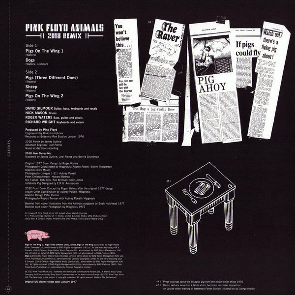 Tracklist: A1. Pigs On The Wing 1, A2. Dogs, B1. Pigs (Three Different Ones), B2. Sheep, B3. Pigs On The Wing 2