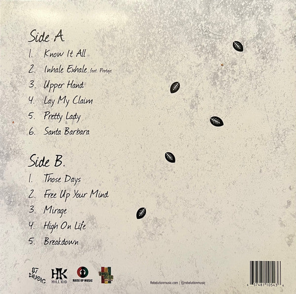 Tracklist: A1. Know It All, A2. Inhale Exhale, A3. Upper Hand, A4. Lay My Claim, A5. Pretty Lady, A6. Santa Barbara, B1. Those Days, B2. Free Up Your Mind, B3. Mirage, B4. High On Life, B5. Breakdown