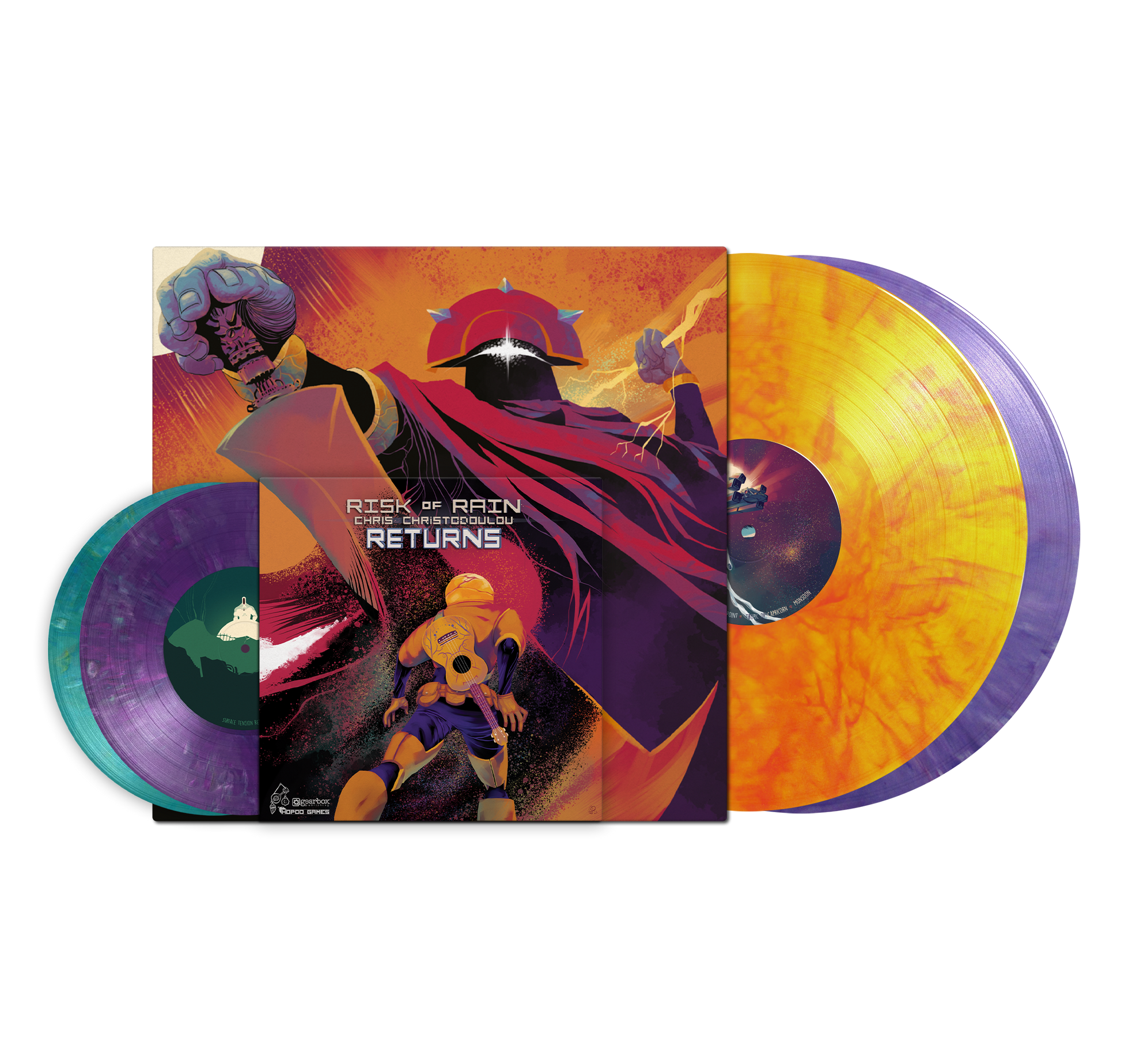 - Colorway One: double LP comes on 180g colored marbled vinyl (Disc 1: translucent sun yellow with red; Disc 2: purple with violet & white) housed in a gatefold cover + a double 7" EP comes on randomly colored eco vinyl with four new tracks written for "Risk Of Rain Returns"