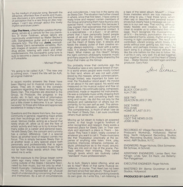 Tracklist: A1. Black Cow, A2. Aja, B. Deacon Blues, C1. Peg, C2. Home At Last, D1. I Got The News, D2. Josie