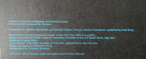 Tracklist: A1. Nightwalking, A2. Unfamiliar, A3. Multitudes, A4. In And Out Of Hand, A5. It Falls Into You, B1. Secrets And Lies, B2. Here Nor There, B3. Song Behind A Wall, B4. Carried Away, B5. Sightseeing