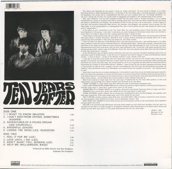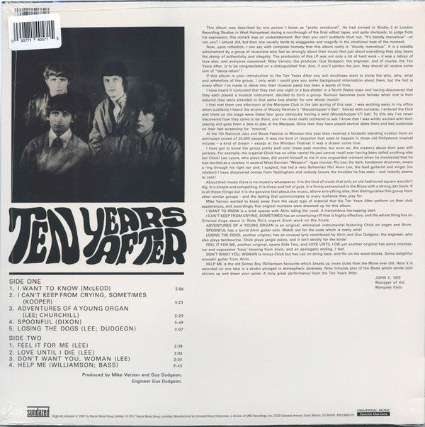 Tracklist: A1. I Want To Know, A2. I Can't Keep From Crying Sometimes, A3. Adventures Of A Young Organ, A4. Spoonful, A5. Losing The Dogs, B1. Feel It For Me, B2. Love Until I Die, B3. Don't Want You, Woman, B4. Help Me