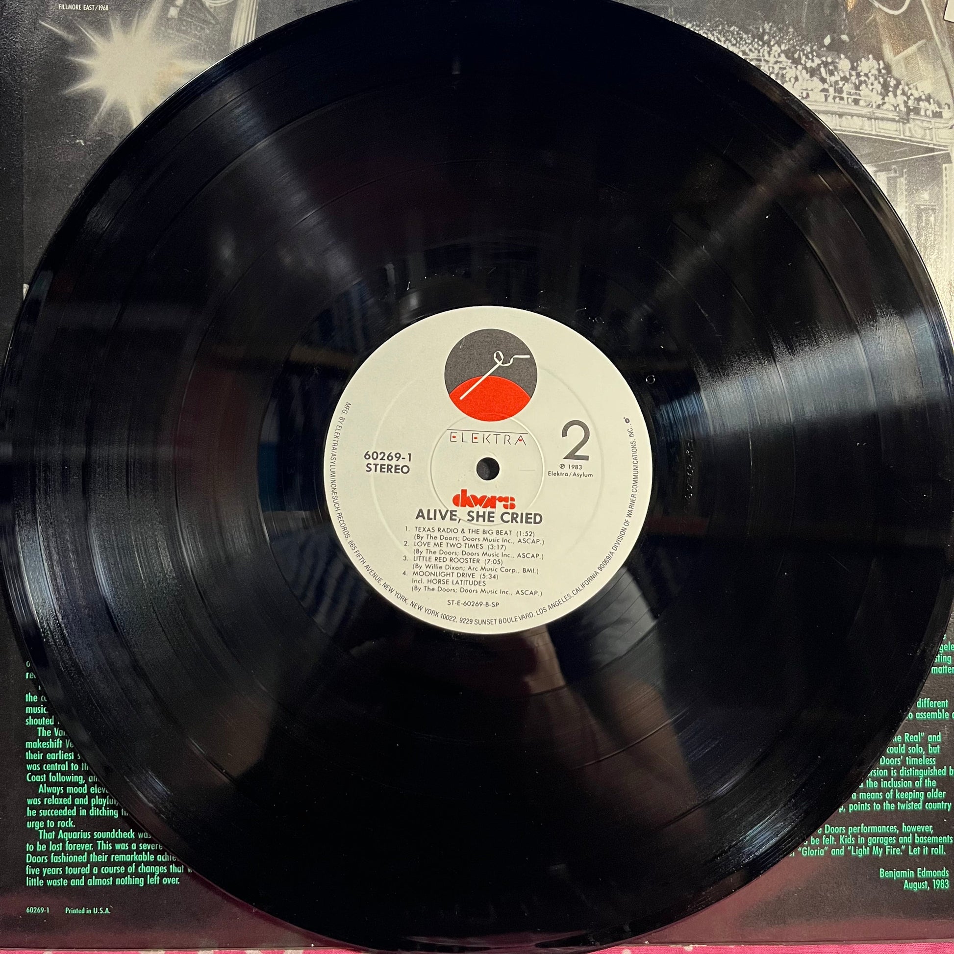 Tracklist: A1. Gloria, A2. Light My Fire (Incl. Graveyard Poem), A3. You Make Me Real, B1. Texas Radio & The Big Beat, B2. Love Me Two Times, B3. Little Red Rooster, B4. Moonlight Drive (Including Horse Latitudes)