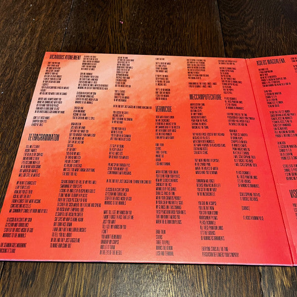 Tracklist: A1. Vicarious Atonement, A2. Tetragrammaton, B1. Vermicide, B2. Meccamputechture, C1. Asilos Magdalena, C2. Viscera Eyes, D1. Day Of The Baphomets, D2. El Ciervo Vulnerado