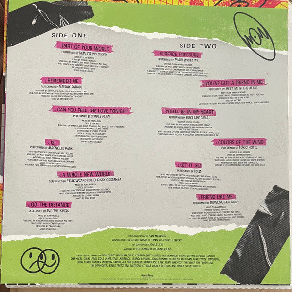Limited clear and black splatter colored vinyl LP pressing. Walt Disney Records presents, A Whole New Sound, a Disney pop-punk covers album featuring 12 tracks from bands including Simple Plan ("Can You Feel The Love Tonight"), Boys Like Girls ("You'll Be In My Heart"), New Found Glory ("Part Of Your World"), Bowling For Soup ("Friend Like Me"), Yellowcard ("A Whole New World"), and more!