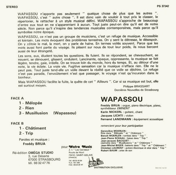Tracklist: A1. Mélopée, A2. Rein, A3. Musillusion (Wapassou), B1. Châtiment, B2. Trip