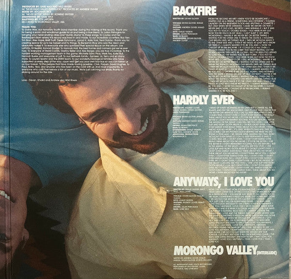 Tracklist: A1. Never Better, A2. Cave, A3. Everywhere I Go, A4. Dance, B1. Backfire, B2. Hardly Ever, B3. Anyways, I Love You, B4. Morongo Valley (Interlude)